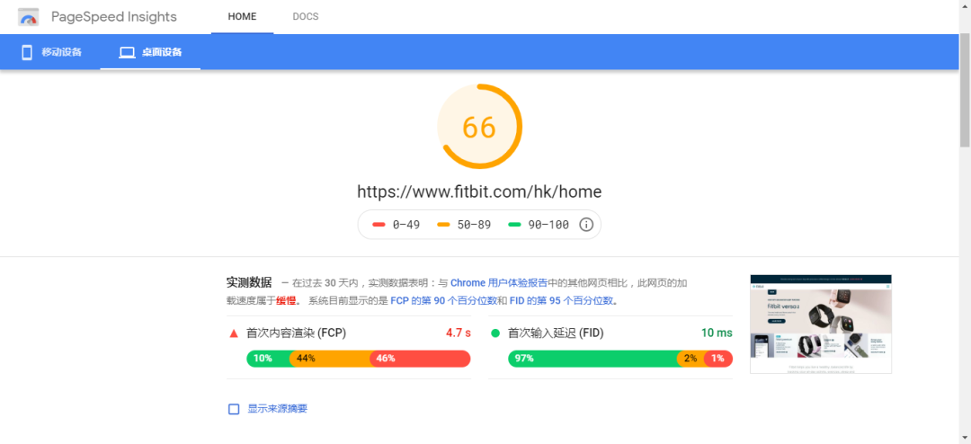 根据谷歌对于Fitbit的网站测速工具,研究员发现Fitbit的品牌独立站在移动设备上速度较慢,桌面设备的速度为中等水平。
