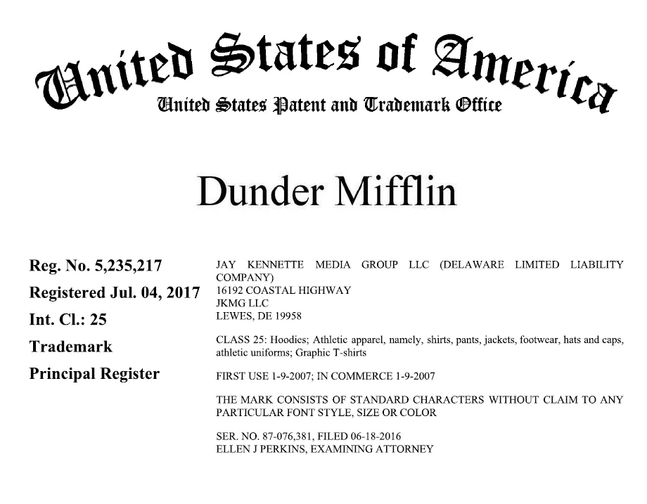 维权产品:DUNDER MIFFLIN 等商标