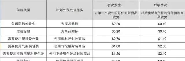 若遇突发情况,需要亚马逊代为处理的,则需要收取相应的额外服务费。(譬如:你寄到亚马逊仓库的商品没有经过妥善的预处理或贴标等)按件收取,第一个货件享半折优惠。