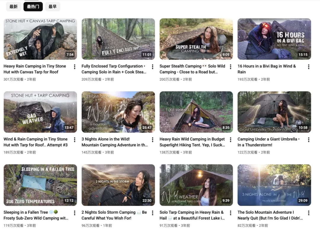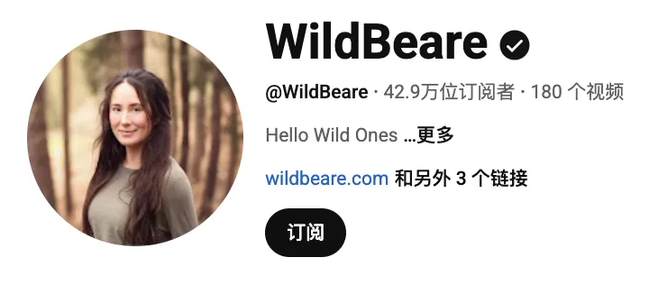 WildBeare是一位在YouTube拥有42.9万订阅者的女性独立户外创作者。她的内容聚焦单人野营、极端天气露营和装备实测,风格真实、朴实、不做作。