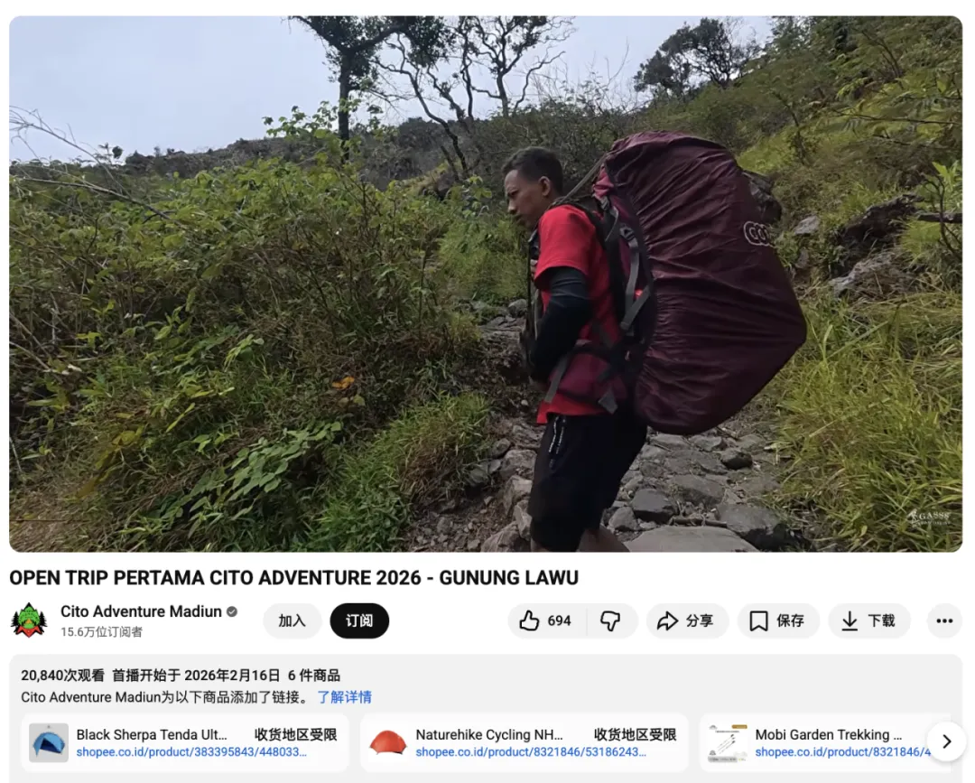 户外品牌Mobi Garden与印尼探险频道Cito Adventure Madiun的合作,正是通过真实的山野实录,完成了从产品曝光到深度信任的本地化渗透。
