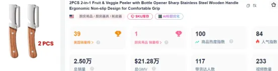 削皮器、开瓶器这类小厨房工具,在海外消费者心中属于“高使用频率、低品牌关注度”的品类。用户买削皮器时,不会像买手机一样去搜“哪个品牌最好”,而是搜“peeler”直接看销量最高或视频最火的。这意味着,第一个用TikTok短视频把这个品类打爆的卖家,会吃掉大部分搜索流量和算法推荐流量。