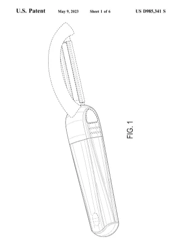 该产品于2021年5月5日提交申请,2023年5月9日获得授权,专利号为USD985341S。