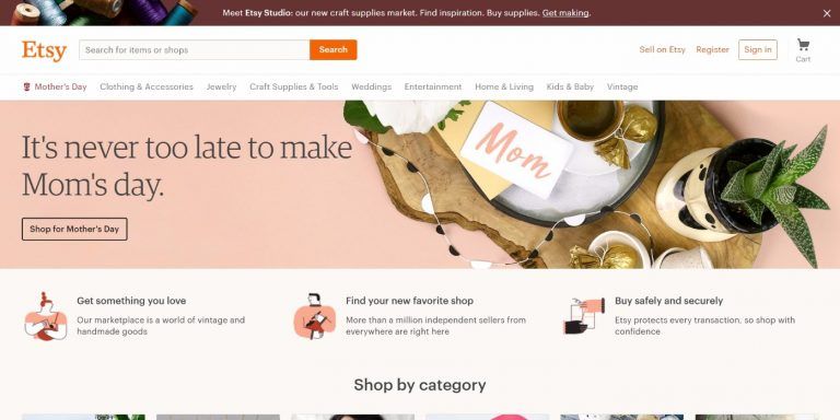Etsy面向手工艺者、艺术家和收藏家,旨在销售卖家的手工产品,除了被归类为“Vintage”或“Supplies”的商品外。