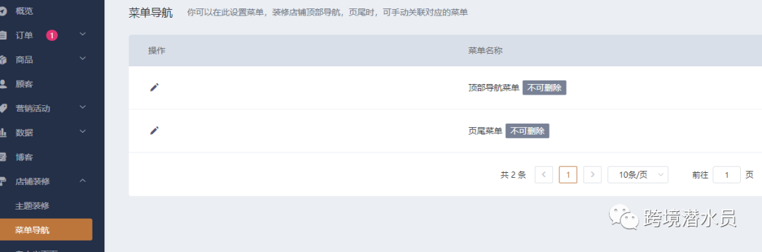 头部菜单和底部菜单设置在后台的,店铺装修——菜单导航设置,设置好后在装修页面调用。