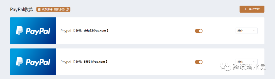 PP收款池:可以对多个Paypal账号进行集中绑定和分配,方便多站点多Paypal账号商家管理店铺及收款账号