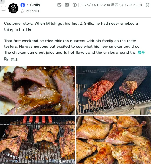 如今,Z GRILLS已成为美国亚马逊户外烤炉类目的人们品牌之一,这个曾经默默无闻的中国制造商,正凭借制造能力与内容温度,成为美国人后院里的常客。