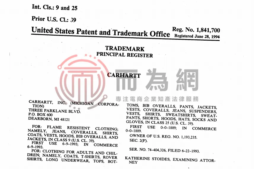 原告 Carhartt, Inc. 成立于 1889 年,是一家拥有130多年历史的美国工装服饰品牌品牌最初专为铁路工人打造耐磨丹宁工装裤,以“极限耐用”为核心,产品覆盖夹克、工装裤、T恤、配饰等全品类,多采用丹宁布、帆布等高品质面料,广泛服务于建筑、制造、农业、户外等专业场景。
