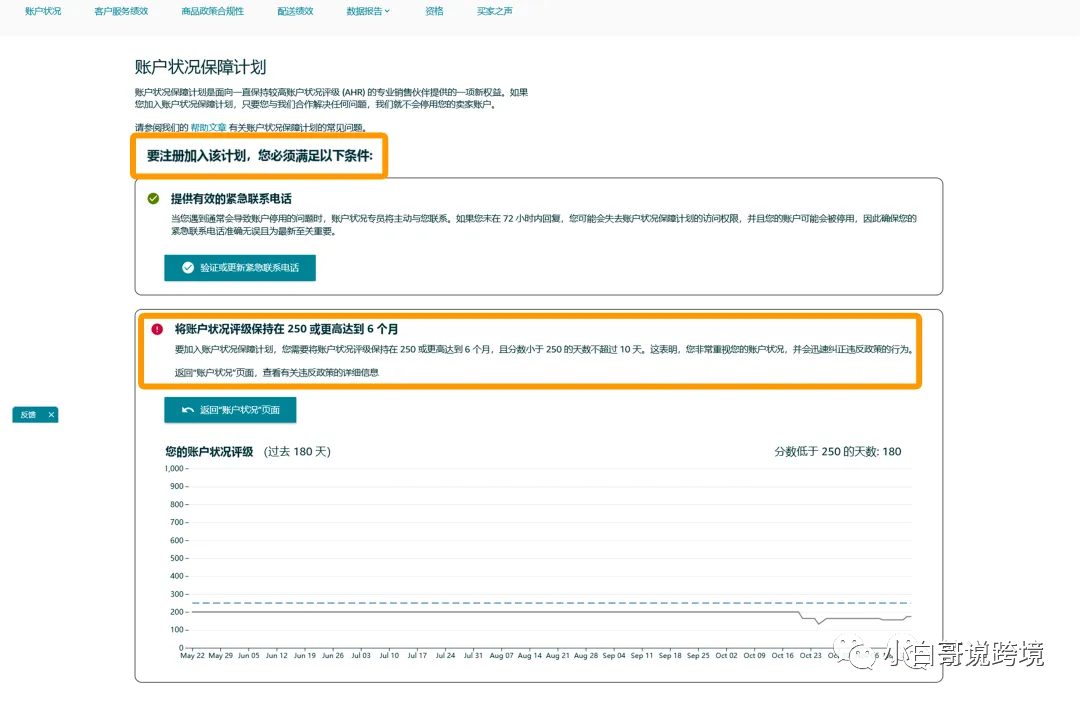 如果有卖家看不到账户状况评级的分数,那就是说明卖家不符合账户状况保障计划的要求。