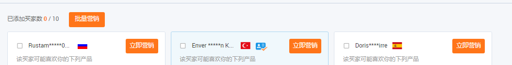 这里有系统随机推送的新客户访客营销机会。可做完访客营销再来做推荐买家营销,则不占用营销机会。