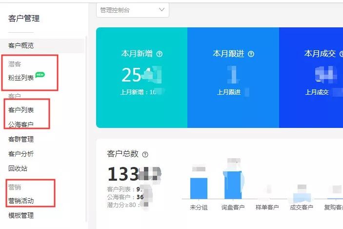 客户通板块应该是今年更新的比较好的一个功能,同时也是很多业务忽略的地方,很少去关注这里面的内容。公海里面的客户,粉丝交换名片,进行客户营销活动等。如果还没做这些工作的,现在重视起来,也不迟。