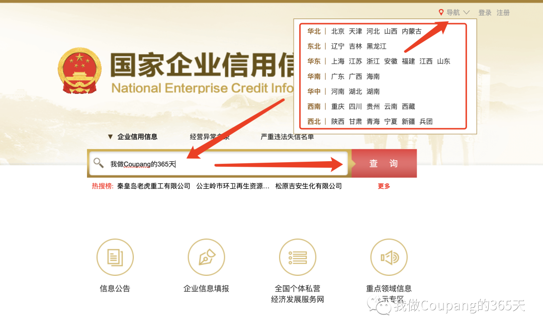 第三步:在搜索框输入公司名字,然后点击查询