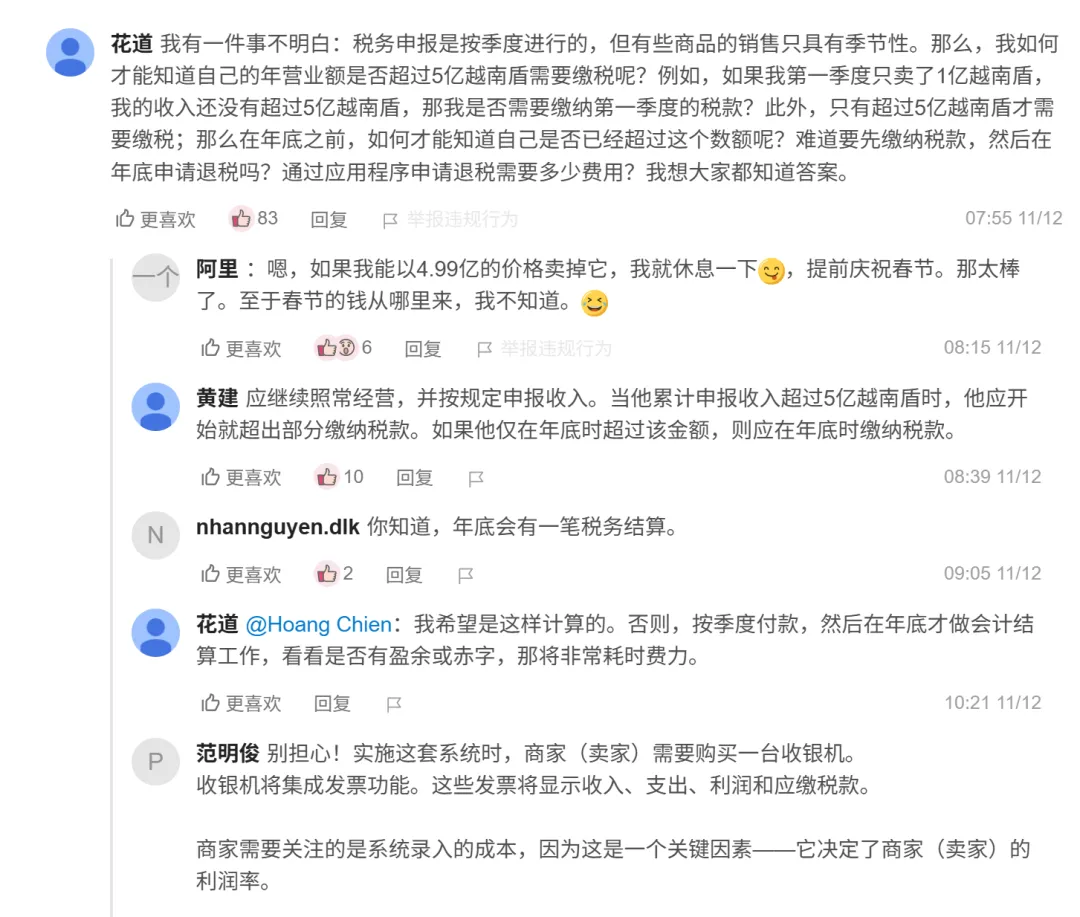 年营收>3 亿越南盾的卖家,需按月申报且官方建议升级为企业主体。