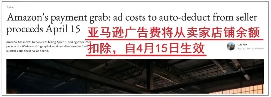 新规则:亚马逊强制要求优先从店铺余额中扣除广告费。订单回款在进入卖家账户前,平台先将广告费划走。资金流向变成了:回款先扣广告费,剩余部分才给卖家。