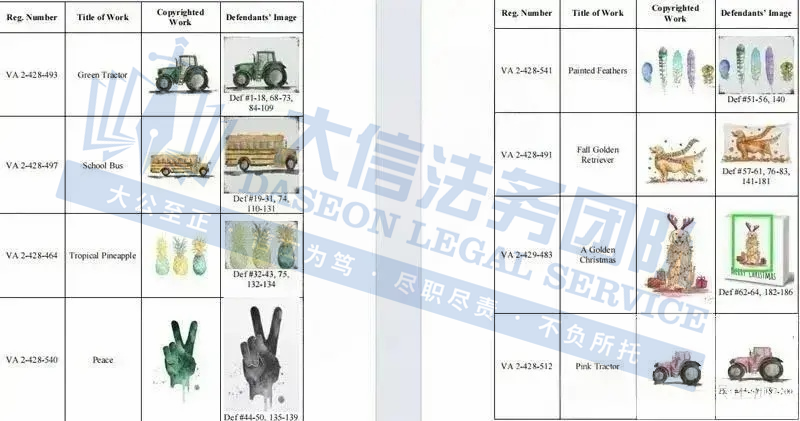 此案为版权维权,涉及8个版权作品,目前已有200名被告,以下是涉及版权的具体信息,未经授权不得擅自使用,侵权风险极高!跨境卖家尽快检索下架,否则会有TRO侵权风险!被告卖家要及时处理,避免造成更大的侵权损失!