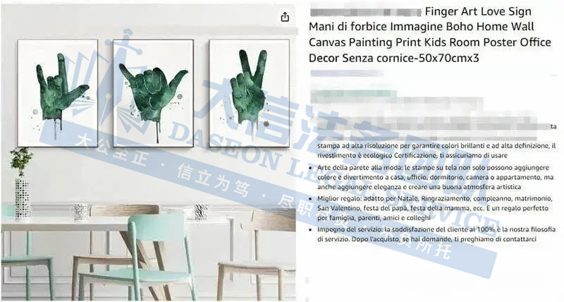 此案为版权维权,涉及2张版权作品,分别为:VA2-416-040 的作品《Quiet Evening》,VA2-416-694 的作品《Spring Arivals》,以下是涉及版权的具体信息,未经授权不得擅自使用,侵权风险极高!跨境卖家尽快检索下架,否则会有TRO侵权风险!