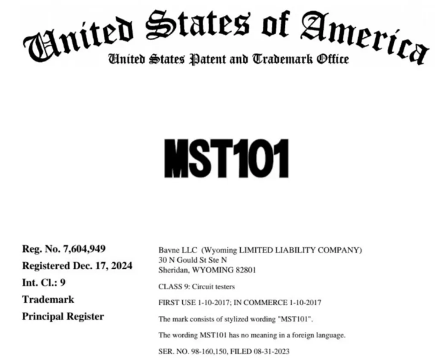 原告Bavne LLC 成立于 2018 年,总部位于美国德克萨斯州,专注于汽车电子检测设备研发与出口。其核心产品MST101 汽车电路测试仪凭借三大技术突破成为行业标杆。