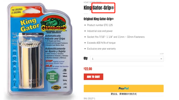 原告 Snyder Manufacturing, Inc. 是 Gator Grip 品牌工具的全球独家分销商,Gator Grip 以“万能棘轮扳手”为核心,独创的可伸缩钢棒设计兼具多场景适用与长久耐用两大优势。