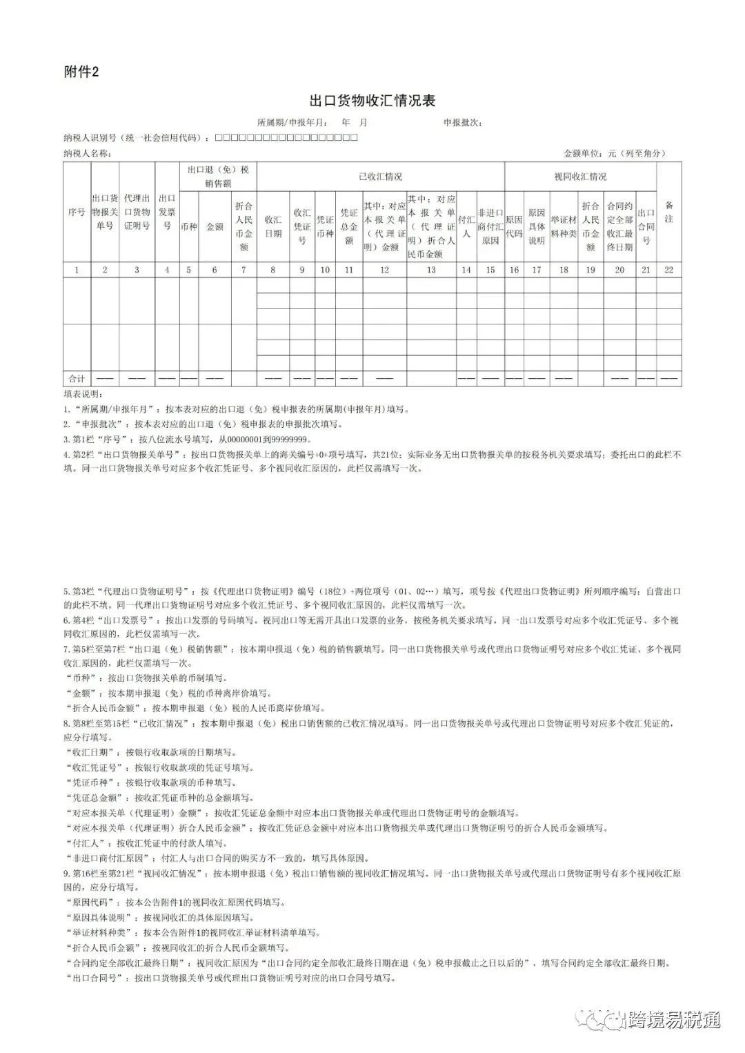 2. 出口货物收汇情况表