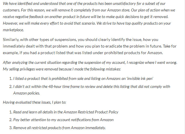 申诉信中的行动计划(planof action)是解封亚马逊卖家账号的关键,不过写作风格也很重要(见下图):