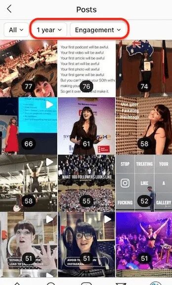 计算完每个帖子的参与程度之后,确定你在Instagram上面的平均参与度,就可以作为你参考的基准,与此同时,这还可以显示你的受众最感兴趣的内容类型。