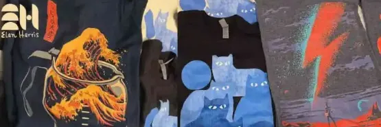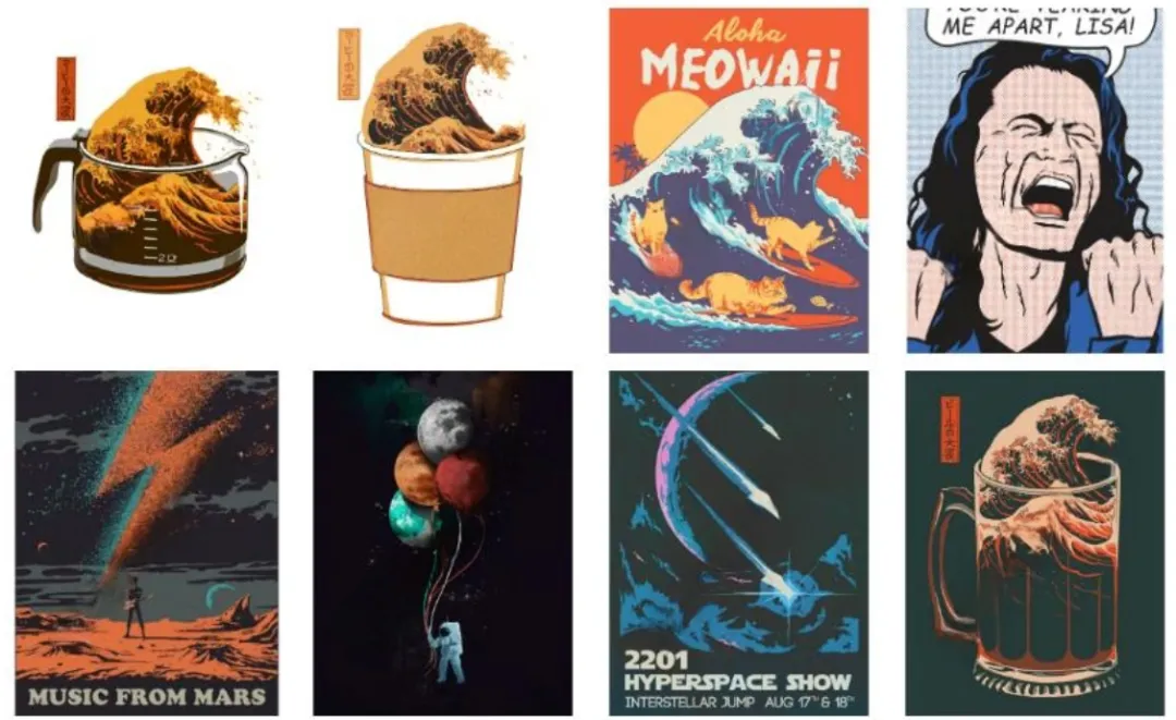 原告艺名 Elanh,来自美国布鲁克林的独立插画师与视觉艺术家,其作品融合了复古、未来与梦境元素,常见几何线条、柔和配色与极具节奏感的构图风格,既有装饰艺术(Art Deco)的优雅,又带着现代平面设计的简洁。