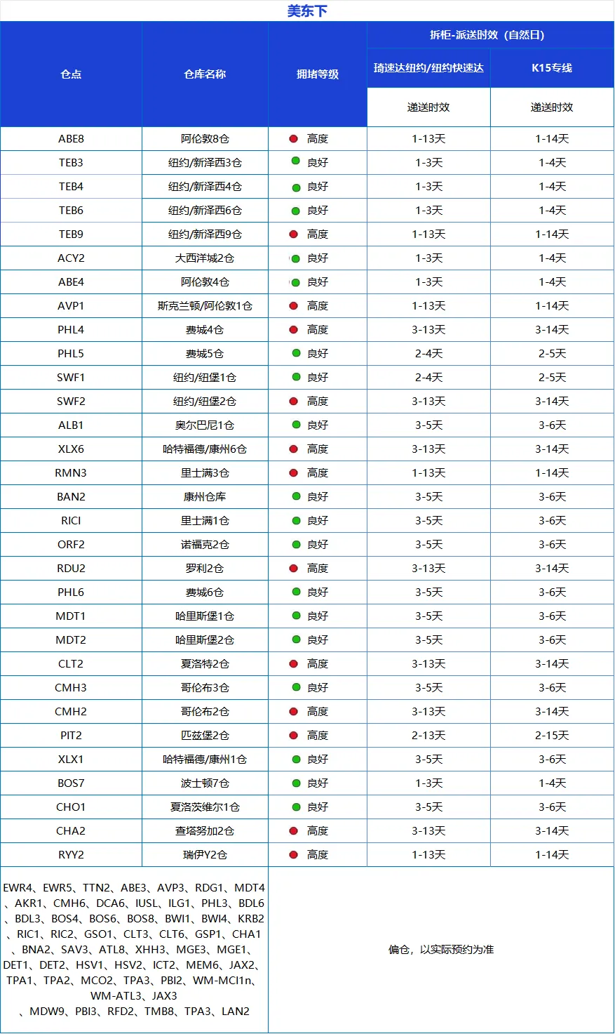 以下是当前美线的爆仓情况,以及我司各热门渠道针对各热门仓点的末端作业时效。