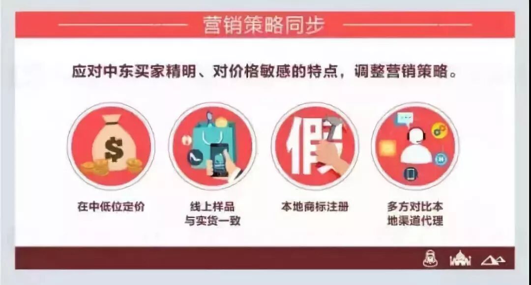定位好合适的目标群体后,就可以制定相应的营销策略。营销策略的制定除了传统的营销思维,还应该考虑到中东地区的文化、习俗,生活习惯的地域差异因素影响,真正将推广落实到本土化。