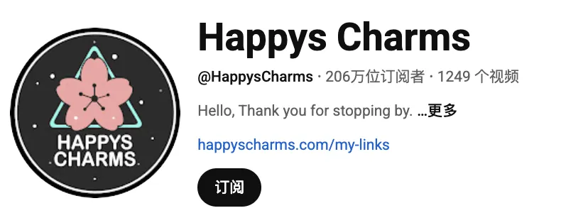 截止到目前,Happys Charms的频道已经累积了超过206万位订阅者。