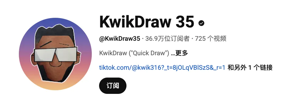 在 YouTube 上,KwikDraw 35 拥有约 36.9 万订阅者,频道视频以快节奏缩时、风格化对比、材料实验为核心。