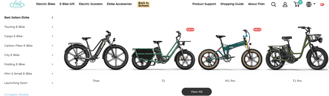 Fiido独立站显示,旅行电动自行车、货运电动自行车、轻型电动自行车、城市电动自行车、折叠电动自行车、迷你和小型电动自行车等11种电动自行车车型,覆盖户外出游、城市通勤、山地骑行等多场景使用,满足消费者个性化需求。