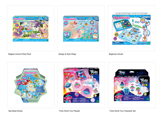 EpochCompany, Ltd是一家知名儿童玩具公司,AquaBeads水雾魔珠系列玩具,在日本及欧美国家拥有很高的知名度,曾获得日本年度优秀奖。公司品牌官网为:https://www.aquabeadsart.com/en-us/,以下是在其官网上部分产品截图:
