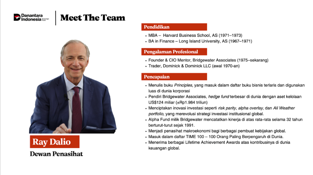 不过,本周三,彭博社发表了一篇文章说达利欧已经决定不加入顾问团。文章里面还说,有内部人士透露,其实在Danantara负责这事的官员只和达利欧等人口头上提了提这事,连正式任命信都还没发。