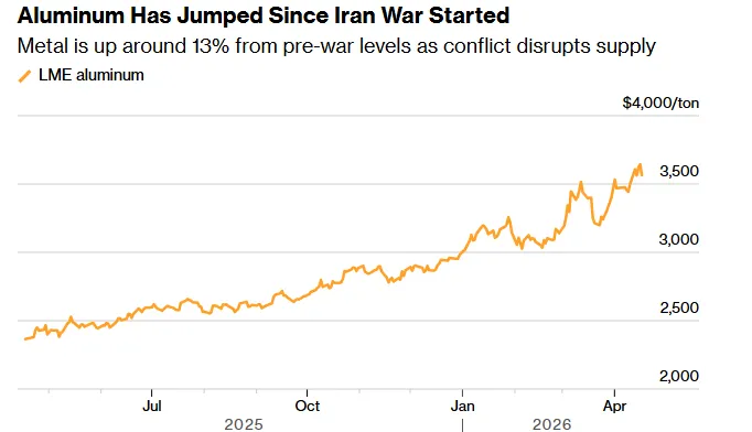 价格飙升:日本买家已同意为第二季度发货的铝支付每吨350-353美元的溢价,较上一季度的195美元激增约80%,创下11年来的最高水平。伦敦金属交易所(LME)的铝价也一度跳涨至每吨3492美元,创下四年新高。