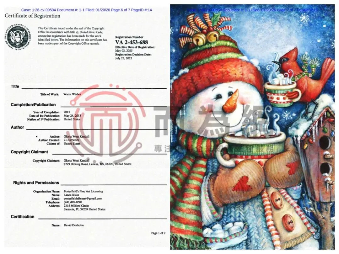 【侵权快讯】26-cv-594 速看避雷!Gloria West Kendall 3张插画作品正在维权中!