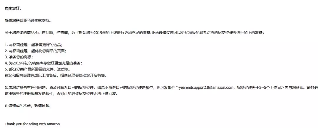 来源:SellerGrowth卖家成长 ID:SellerGrowth01 作者:小二 亚马逊又双叒叕出新政了! 小编还沉浸在广告VAT的悲痛之中,没想到今天店铺listing又莫名不可售了! 再一问竟是亚马逊新政导致的销售暂停? 亚马逊新政,账号莫名被暂停 今天小编看到有卖家在说,自己英国站被莫明奇妙停售,没有业绩通知也没有小红旗,而且是整个店铺的listing都显示不可售,后台正常前台搜不到任何产品,但是德国站点却可以正常销售。 卖家咨询了客服,回复如下: 客服说道,这是亚马逊的一个新政策,全球开店业务部门将针对部分卖家,暂时暂停其上线销售。 在该卖家的再三确认下,这确实是亚马逊的新政策,并且,今年注册的欧洲新账号以及有玩具类目的店铺,都有可能会被查。 2 被暂停销售怎么办 被暂停销售的卖家需要有相应准备才能继续销售,具体准备卖家支持的邮件中也给出了解答: 邮件中提到,卖家需要做的准备除了足够的库存、部分产品所需的文件及资质等以外,还需要有商标! 难道这又是亚马逊变相让卖家注册商标的政策?又或者是变相的让卖家规范玩具类目产品? 脑洞归脑洞,如果有卖家销售被暂停,还是首要直接联系招商经理的好,有什么不懂的也可以直接找招商经理解决。 但不管怎么说,亚马逊在邮件中特意将“商标”列为一点,也算是在给卖家们提醒了,现在欧洲的税务已逐渐趋于正规,下一步的动作或许就是知识产权,又或者规范产品。 3 从新政看未来运营方向 (1)商标注册——知识产权 准备商标是卖家恢复销售权限需准备的资料之一,这或许是亚马逊强制卖家尊重知识产权的一种手段,也是防止卖家售卖仿货、三无等产品,同时也是品牌的象征。 注册商标有什么好处? 可以在亚马逊的例行审查中占有主动权; 防跟卖几率大大提高; 是品牌的标志。 (2)部分分类产品所需的文件、资质等——产品合规 文中一开始就提到,玩具类目卖家最有可能被暂停销售,今年亚马逊对平台产品审核十分严格,尤其是玩具类目。 其实今年7月份开始,亚马逊就对玩具游戏类目的产品做出了限制和调整,只有符合以下标准的卖家才能在2018年10月17日至2019年1月5日这段限制时间内进行销售: