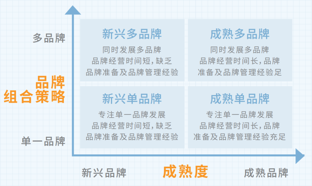 品牌成熟度是依据品牌经营时间、广告准备情况、管理经验等对品牌进行分类,如上图所示的【新兴品牌】和【成熟品牌】。