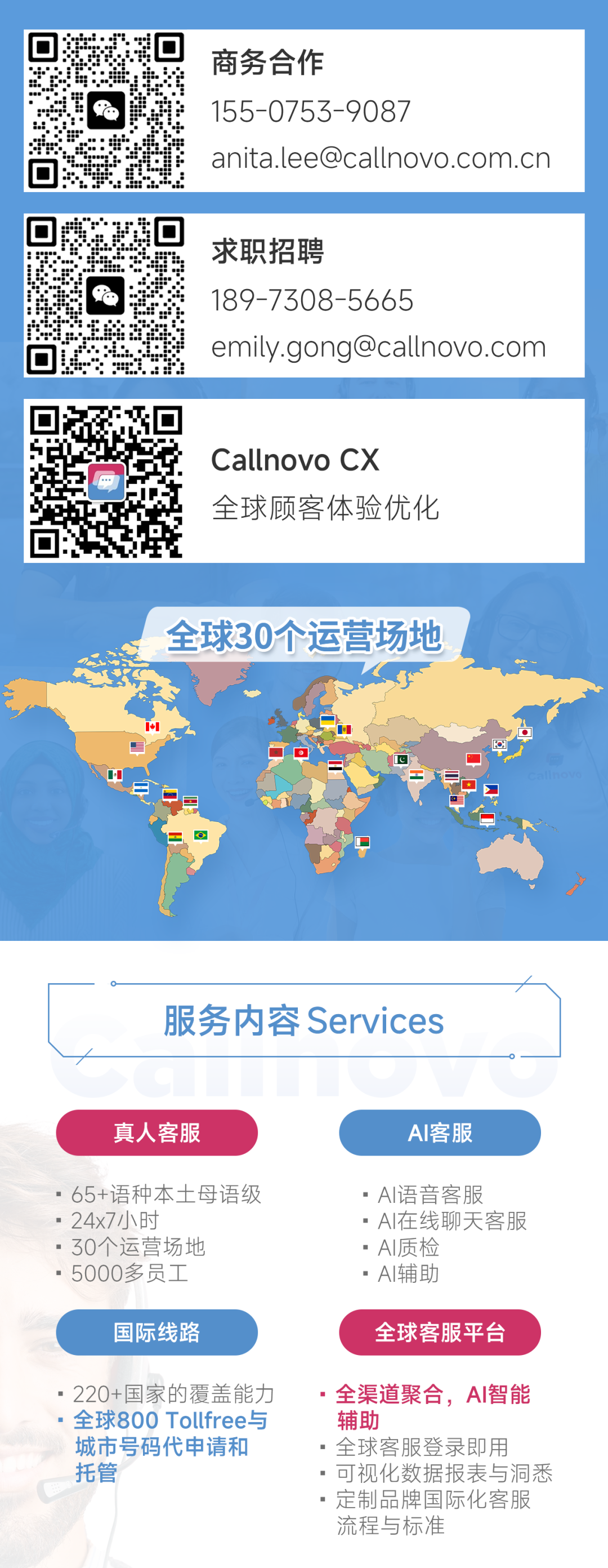 目前,Callnovo已将7C沟通原则全面融入管理、培训与质检体系,特别在多平台玩具客服管理中,助力品牌实现“语言、效率、情绪”的三重融合,打造稳定、可复制的客服外包标准。