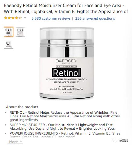 这款面霜产品有超过3400条评论,总体评级为四星好评。除了视黄醇等今年来热门的护肤品配方成分外,这款产品的亮点还在于人性化的压泵设计,以及适用于所有肤质保湿提亮的产品特点。