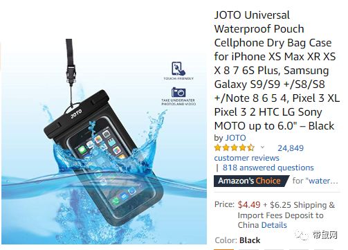这款评论数超过24000条的4.4星好评产品深受消费者的欢心。这款产品完美解决了户外或是水下拍照的用户痛点:6英寸的超大尺寸几乎满足所有手机,此外在安全防水的同时还支持手机的触屏功能使用。