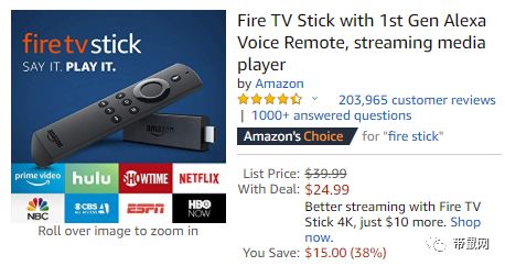 亚马逊Fire电视棒的评论数超过20万条,并且好评度达4.4星。这一设备受欢迎的原因在于通过订阅Netflix、DIRECTV NOW等节目,用户可以随意浏览线上的任何视频内。