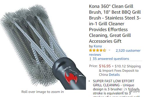 这款产品的评论数超过2500条,产品评分高达4.7星。这款烧烤清洁刷的亮点在于长度适中和360度可旋转的手柄,较传统产品大大提升了清洁速度和耐用性。