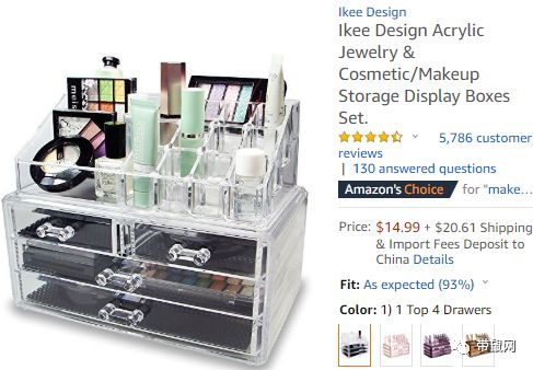 这款收纳盒有超过5700条评论,质量评分为4.3星。其卖点是不同尺寸的收纳空间设计完美地满足了个护产品或桌面杂物的收纳需求。