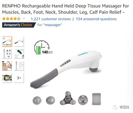 这款4.3星的手持按摩器拥有1221条评论,其每分钟3600次按摩器转速能够很好地满足客户放松肌肉、缓解疼痛的需求。