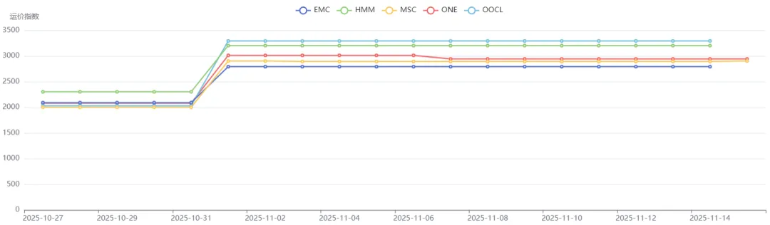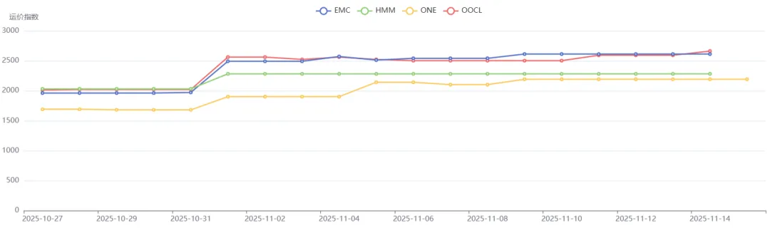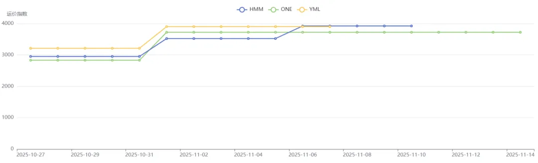 目前,HMM/YML敞开收货,OA联盟电商运价目前还在高位,预估11月下旬运价可能迎来小幅下跌。