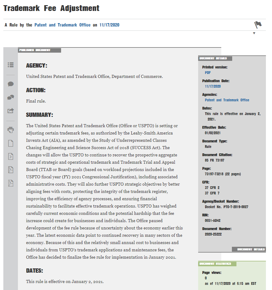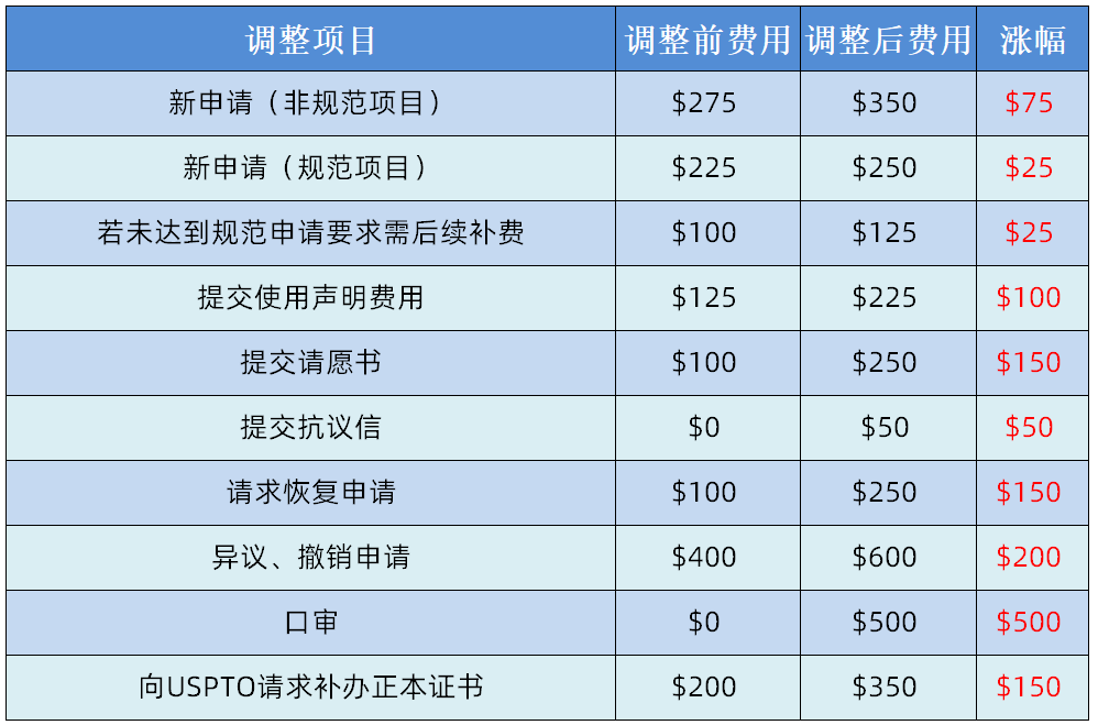 这次确定了!美国商标官费明年将上涨,三年来首次上调费用!