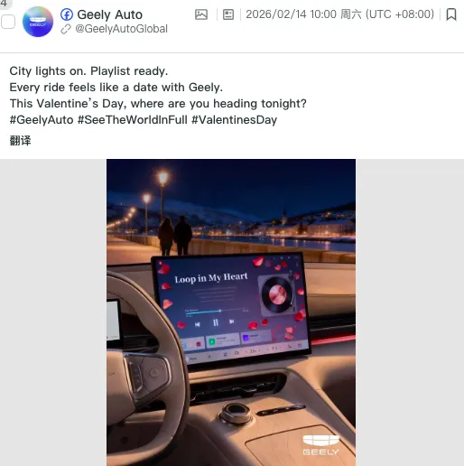 如果说比亚迪更强调“统一且稳定的价值表达”,那么吉利汽车的路径,则更接近另一种能力:在不同文化语境中,让品牌自然融入。这种能力的核心,不在于信息本身,而在于表达方式的“嵌入感”。