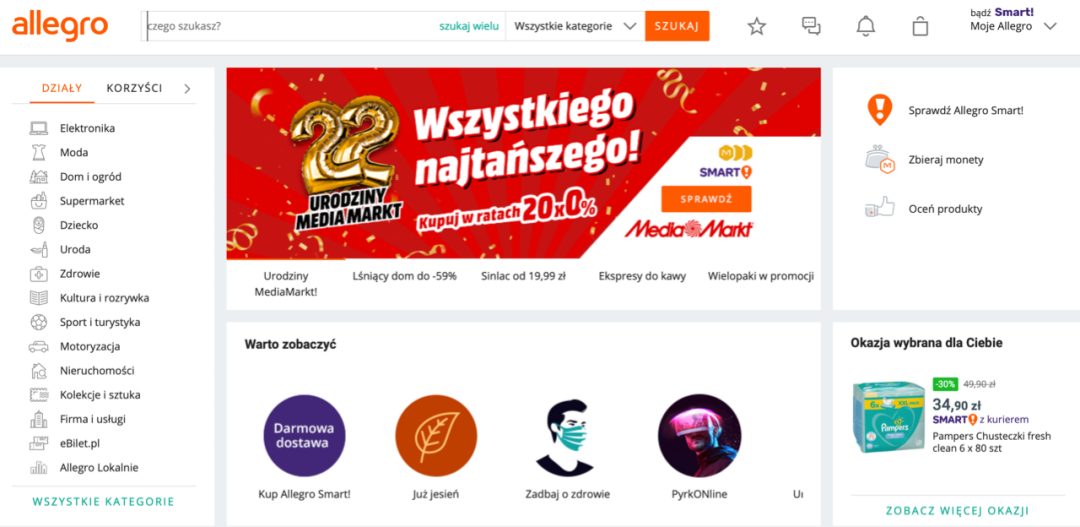 Allegro网站成立于1999年,后来被非洲市值最高的公司Naspers收购。Naspers就是那家在全世界130多个国家都有业务,还投资了腾讯和俄罗斯互联网集团Mail.Ru Group的超级传媒集团。