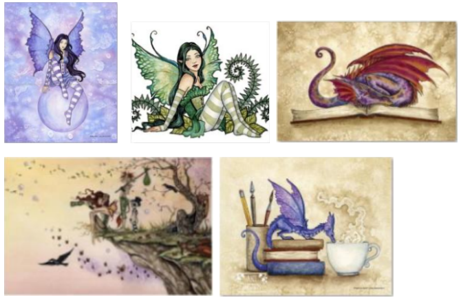 艺术家Amy Brown的画作多用水彩画进行创作,专注于创作小精灵仙女系列,魔幻色彩以及细腻的绘画技巧是其作品特点。