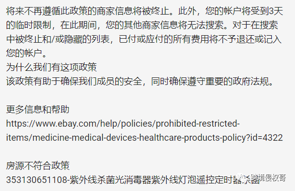 而eBay给出的理由是:不遵守我们的处方设备政策。需要处方的医疗设备无法在eBay上出售。其他处方设备的清单必须遵循我们的规则。目前在US/UK/AU都有移除记录,照这样看来整个eBay平台应该都是限制了紫外线产品的销售。